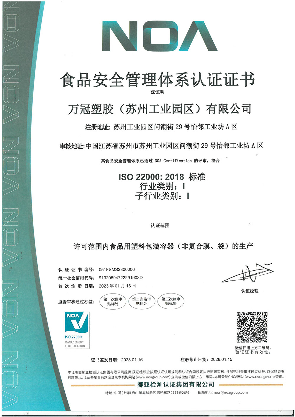 ISO22000认证证书
