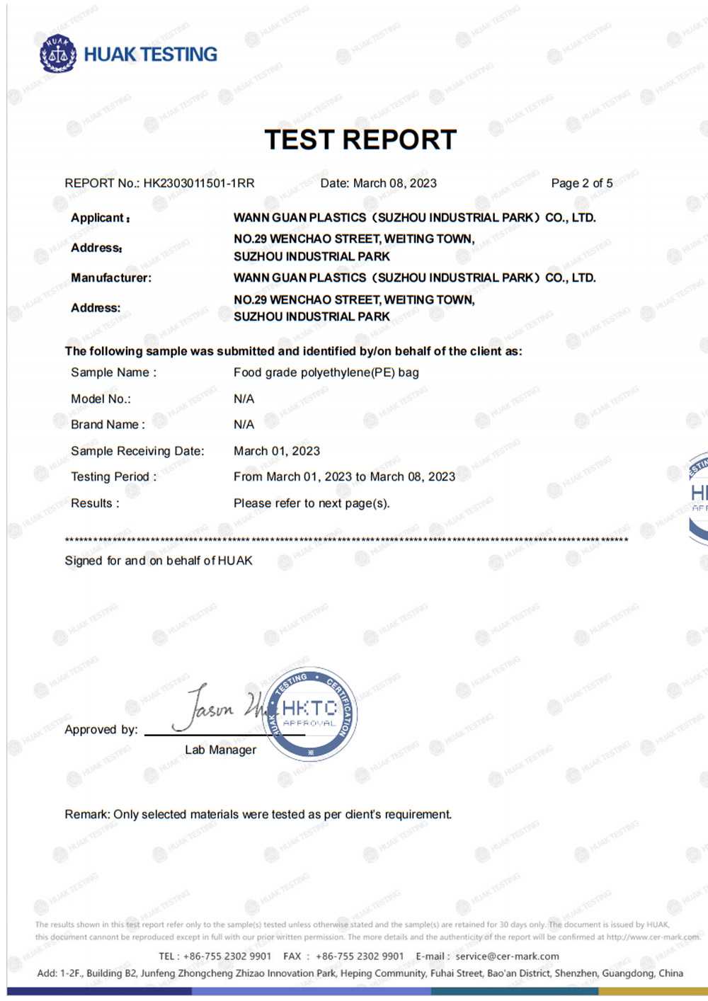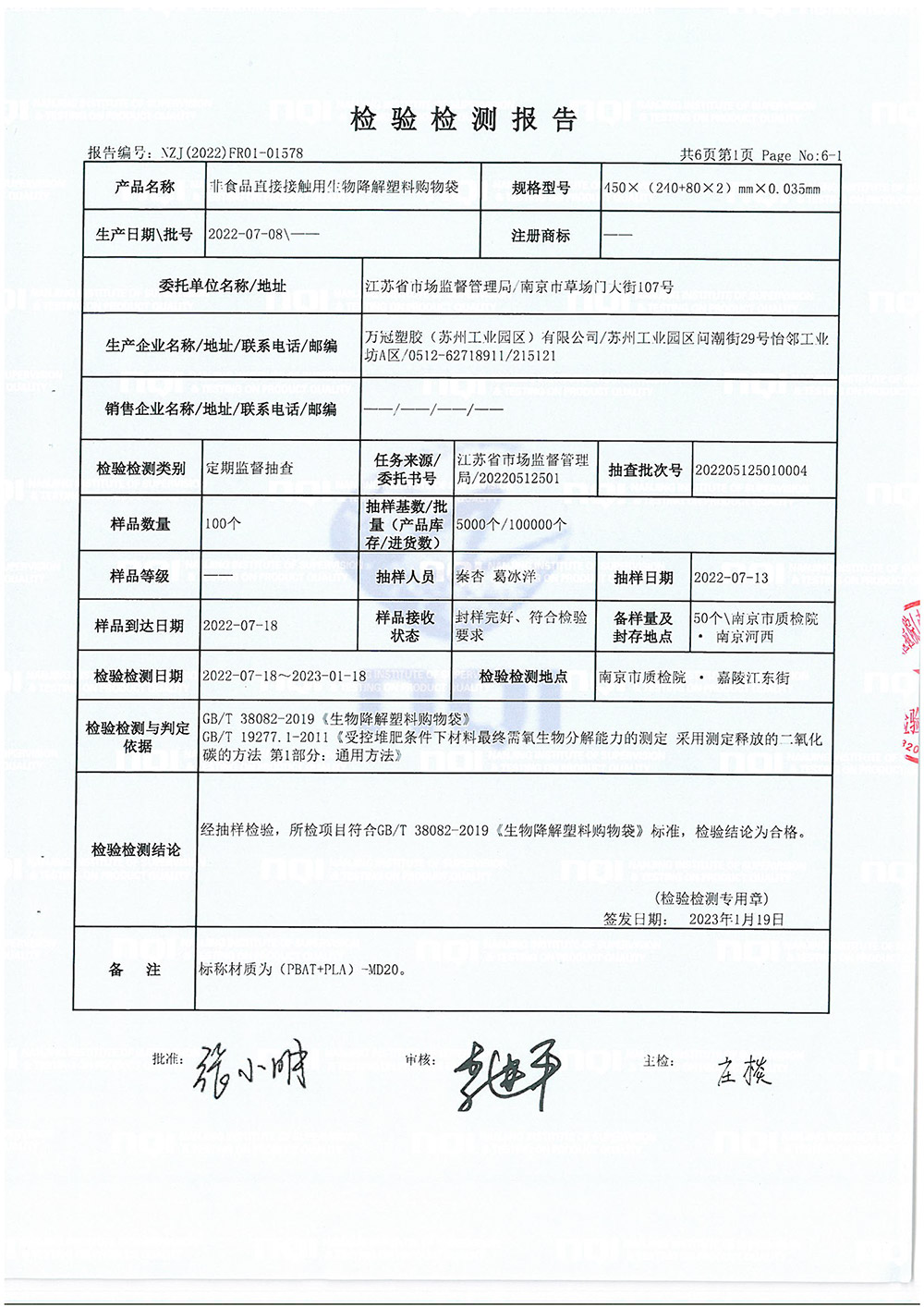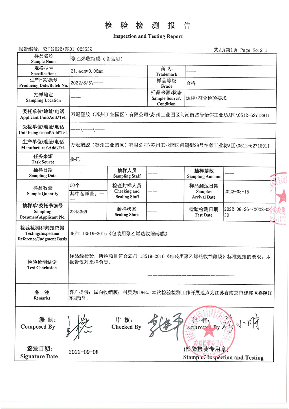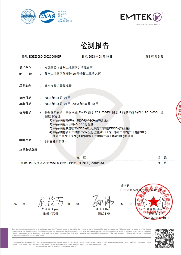 聚乙烯收缩膜检测报告